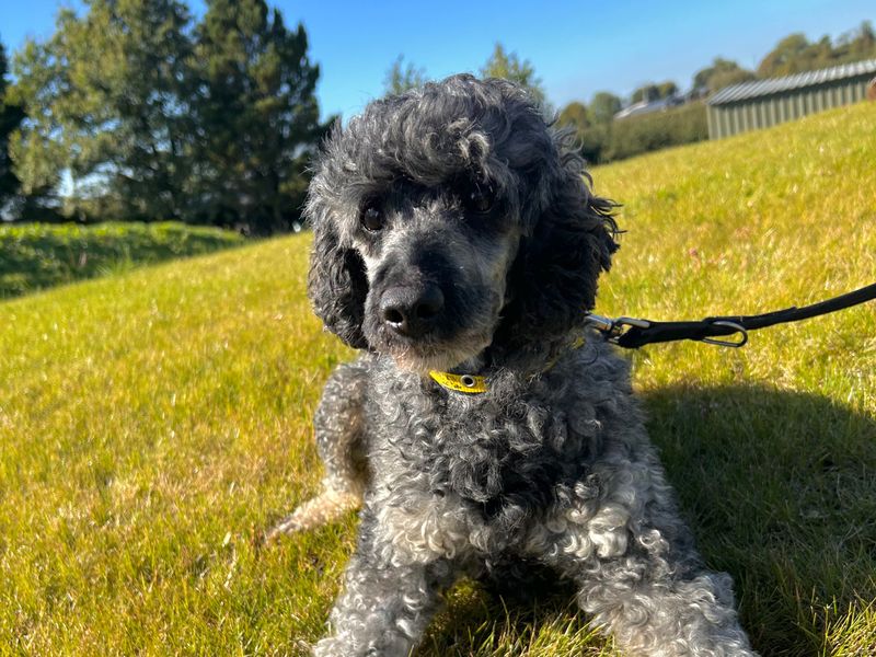 This handsome little chap is Randolph! He is a 9 year old Minatare Poodle with the spirit and energy of a younger dog. He is looking for patient adopters in a quieter home, which means no younger family members. He takes a little bit of time to get to know you before coming out of his shell, but once he does he is a ray of sunshine! Randolph would benefit from the company of another suitable dog to help with his confidence, so after successful meets he would love to live with a new doggy friend. He is currently sharing his kennel with another dog and really enjoys having the company. For this reason, Randolph cannot be left alone during the settling in period after his adoption. Someone around for most of the day would be ideal, but if his adopters need to leave the home during the day for work or other activities, then work will need to be done to gradually increase leaving time.