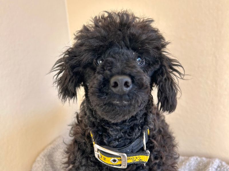 This cute little chap is 1 year old Miniature Poodle, Jim! He is a little bit more on the sensitive side, and is searching for a loving home that will help him find his confidence. Jim will be best suited to an adult only home, or a family with older secondary school children. He feels more comfortable in a calm environment, and although he can live with with another dog, they will need to be calm natured as he finds boisterous dogs to be too much. Jim is a super friendly boy, and likes to look to the people around him for reassurance. He will need multiple meets at the Centre with his adopters before he goes home to build a relationship. Jim has also never been left alone for very long, so his adopters should be at home with him to begin with until he settles in, and then leaving time can be gradually increased.